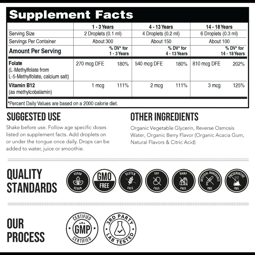 Yes, our methylfolate drops are safe for all ages! We now offer a Kids version specially formulated for ages 1–18.